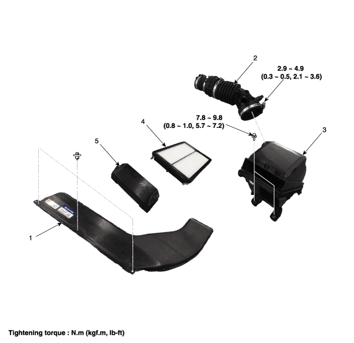 Hyundai Sonata: система впуска и выпуска / компоненты воздухоочистителя и расположение компонентов