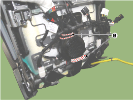 Снимите блок сиденья с вентиляцией (А) после отсоединения разъемов (В).