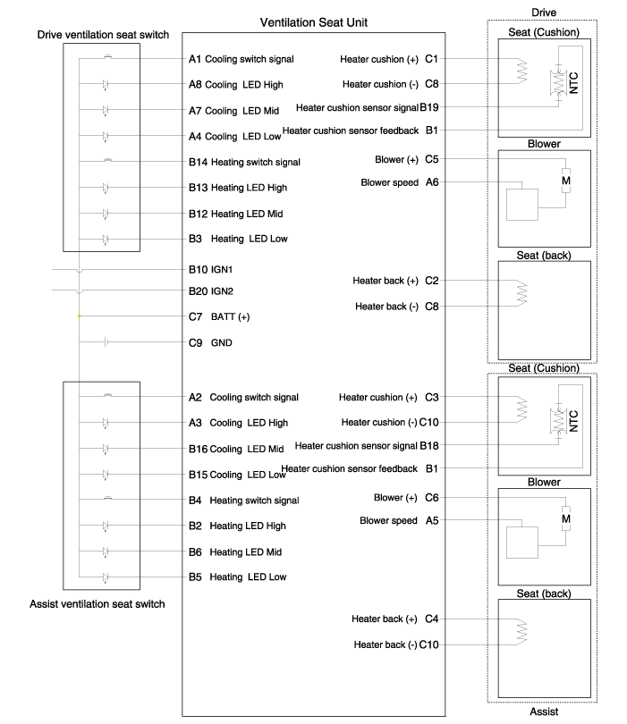 Компоненты сиденья с вентиляцией и расположение компонентов