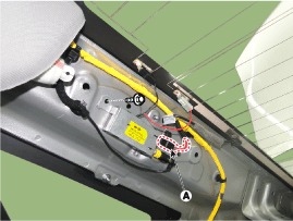 Отсоедините разъем питания антенного усилителя (А) от стеклянного антенного усилителя.