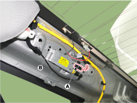 Снимите антенну на крыше (A), ослабив гайку (B).