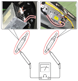 Прикоснитесь одним щупом тестера к клемме стеклянной антенны (A) и