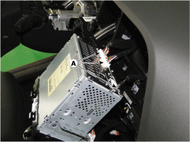 Снимите головное аудиоустройство, отсоединив разъемы и кабель (A).