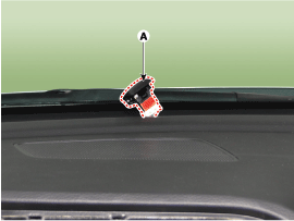 С помощью отвертки (-) снимите датчик автоматического освещения (А) с верхней стороны подушки безопасности.