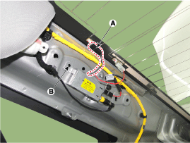 Отсоедините разъем питания антенного усилителя (А) от стеклянного антенного усилителя.