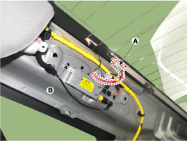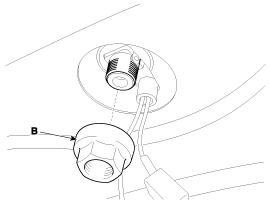 Снимите антенну на крыше (A), ослабив гайку (B).