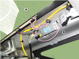 Проверьте целостность цепи между центральным полюсом (A) антенного кабеля и клеммой стеклянной антенны (B). Должна быть преемственность.