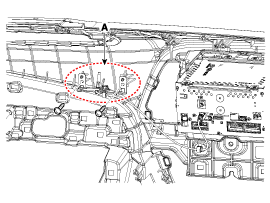 Измерьте напряжение между клеммами разъема питания антенного усилителя (А) и массой кузова (В).