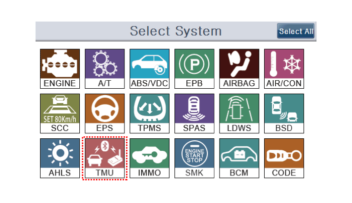 Выберите «Блок телематики (TMU)», чтобы проверить блок телематики.