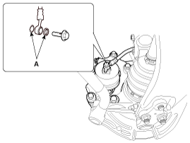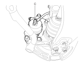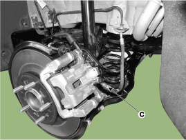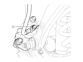 Отсоедините тормозной шланг от тормозного суппорта, ослабив болт (С).