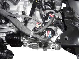 Снимите узел привода сцепления с коробки передач, предварительно ослабив болт (A-3ea).