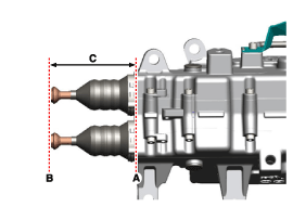Измерьте длину (С) от базовой плоскости (А) до конца стержня (В).