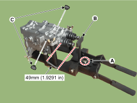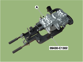 Установите неисправный привод сцепления (А) на специальный инструмент для обслуживания (09430-C1302) и закрепите привод с помощью гаек.