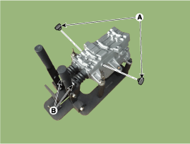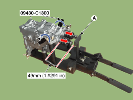 Установите привод сцепления (А) на специальный инструмент для обслуживания (09430-C1302) и закрепите привод с помощью гаек.