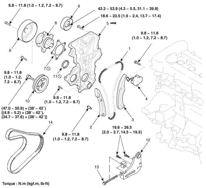Руководство по обслуживанию Hyundai Sonata LF 2014-2019: Компоненты цепи ГРМ и расположение компонентов