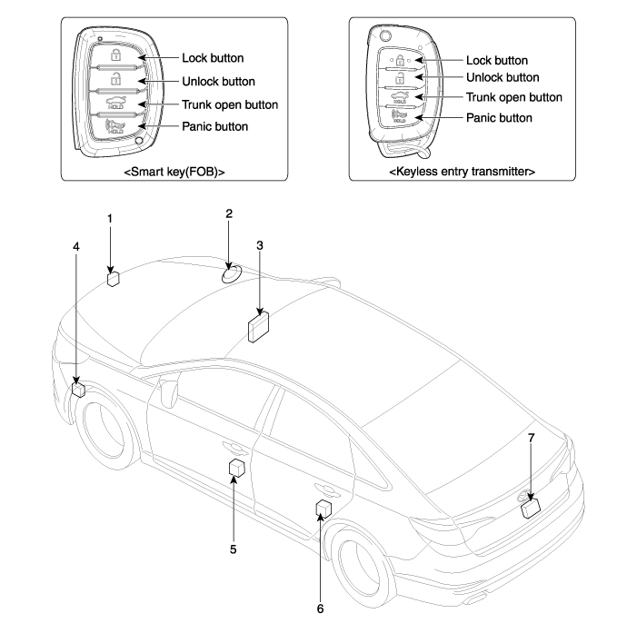 Hyundai Sonata: бесключевой доступ и охранная сигнализация / Расположение компонентов и компонентов
