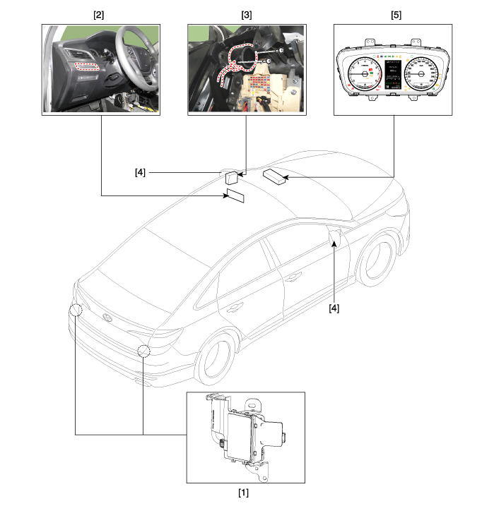 Hyundai Sonata: система обнаружения слепых зон / Компоненты и расположение компонентов