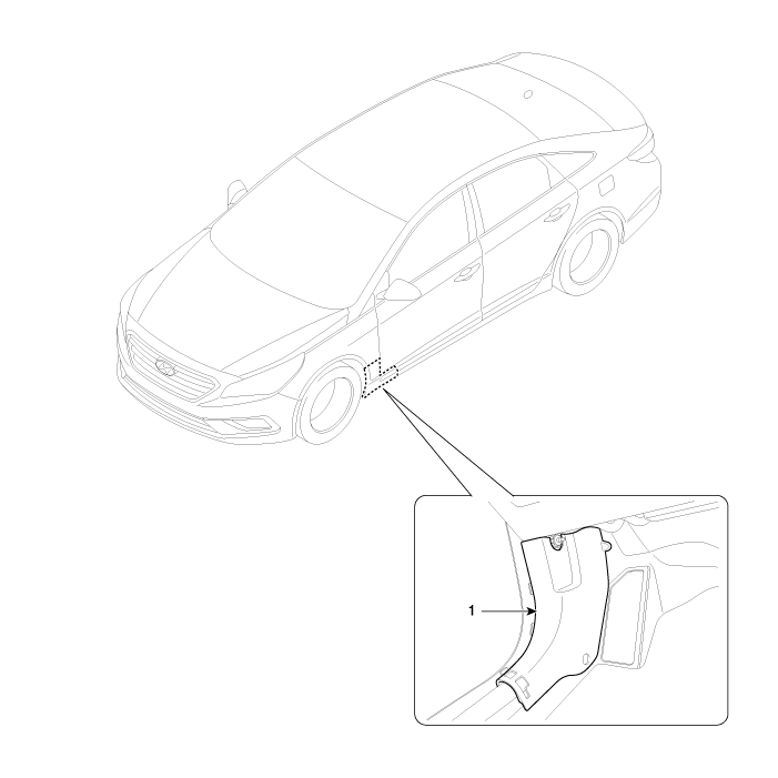 Hyundai Sonata LF 2014-2019 Руководство по ремонту / Кузов (внутри и снаружи) / Внутренняя отделка / Компоненты боковой обшивки капота и расположение компонентов