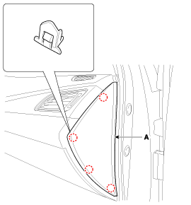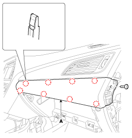 С помощью отвертки или съемника снимите боковую крышку аварийного щитка [RH] (A).