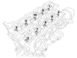 Выверните болты крепления головки блока цилиндров, затем снимите головку блока цилиндров.