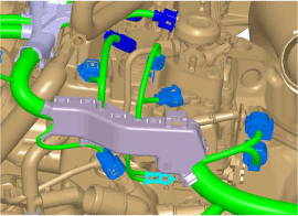 Отсоедините разъем проводки двигателя и зажим троса, а затем снимите защиту головки блока цилиндров и проводку с двигателя.
