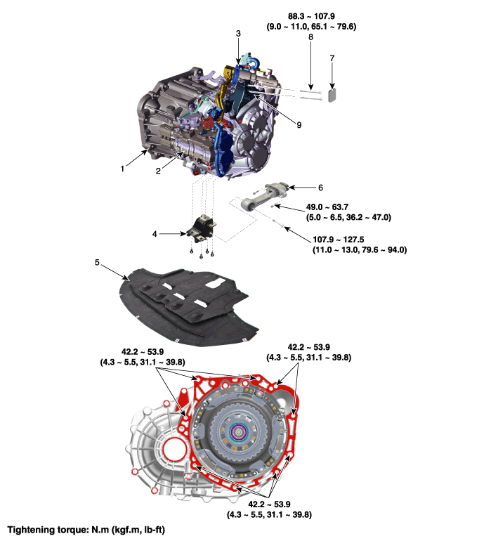 7. Пылезащитный чехол 8. Болт крепления опорного кронштейна 9. Кронштейн опоры коробки передач |