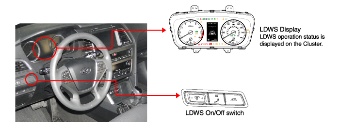 Hyundai Sonata: система предупреждения о выходе из полосы движения (LDWS) / описание и работа