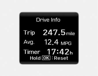 Чтобы вручную сбросить информацию, нажмите и удерживайте кнопку OK при просмотре. Информация о вождении. Расстояние поездки, средний расход топлива,