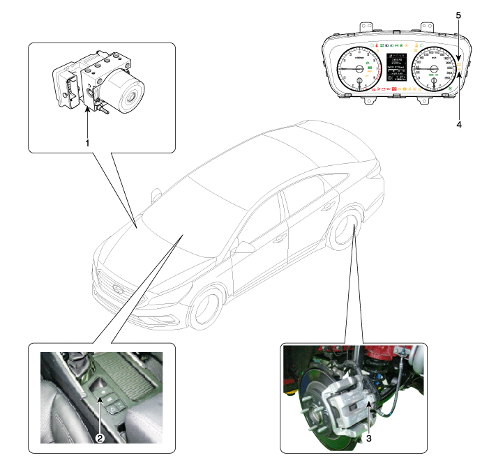 Hyundai Sonata: Система стояночного тормоза / Электрический стояночный тормоз (EPB) Компоненты и расположение компонентов
