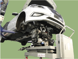 Подоприте двигатель и коробку передач в сборе с помощью напольного домкрата.