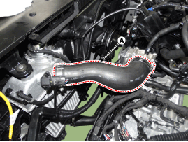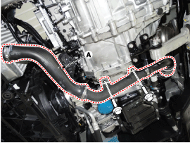 Снимите впускные шланги и трубку промежуточного охладителя (А).