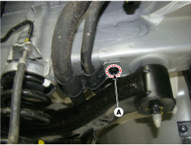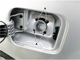 Снимите узел заливной горловины с автомобиля, отвернув установочный болт кронштейна (А).