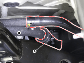 Отсоедините вентиляционный шланг (В) от воздушного фильтра топливного бака.