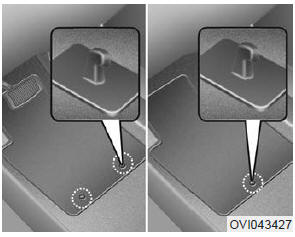 ВАЖНО - Ваш автомобиль был изготовлен с креплениями для напольных ковриков со стороны водителя. которые предназначены для надежного удержания напольного коврика на месте. Во избежание каких-либо помех с педальным управлением, HYUNDAI рекомендует использовать напольный коврик HYUNDAI, предназначенный для использовать в вашем автомобиле быть установленным.