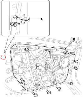 Ослабив крепежные болты, снимите модуль передней двери (В).