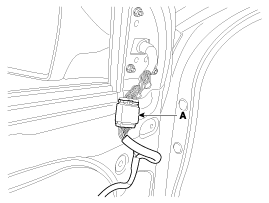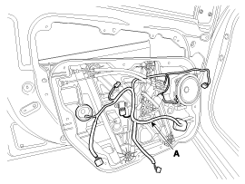 Отсоедините разъемы и жгут проводов модуля передней двери (А).