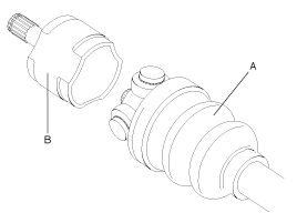 Разделяя пыльник (A) шарнира (TJ) со стороны коробки передач, вытрите смазку в корпусе TJ (B) и соберите их соответственно.