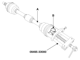 Снимите крестовину в сборе (B) с приводного вала (A) с помощью специального инструмента (09495-33000).