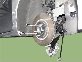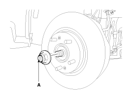 Снимите гайку приводного вала (А) с передней ступицы при включении тормоза.