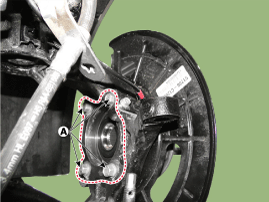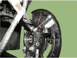Ослабьте болт (А) и снимите подшипник ступицы (А).