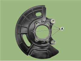 Выверните болты крепления тормозного суппорта, а затем установите тормозной суппорт в сборе (А) с помощью проволоки.