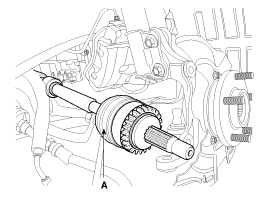 Отсоедините приводной вал (А) от передней ступицы в сборе.
