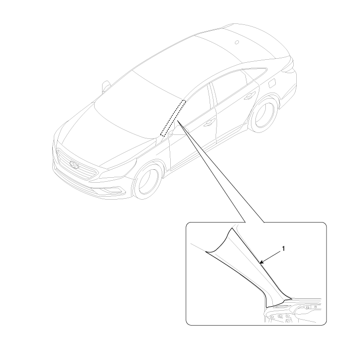 Hyundai Sonata LF 2014-2019 Руководство по ремонту / Кузов (внутри и снаружи) / Внутренняя отделка / Компоненты отделки передней стойки и их расположение