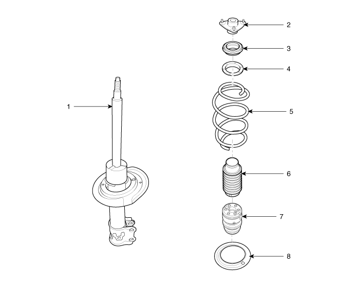 Hyundai Sonata: Система передней подвески / Компоненты передней стойки в сборе и расположение компонентов