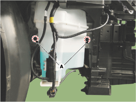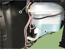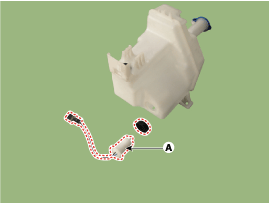 Снимите впускной патрубок омывателя бачка (А) после ослабления крепежного болта.