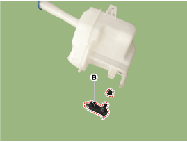 Снимите двигатель омывателя (А) и переключатель датчика уровня (В).