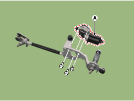 Удерживая кривошип электродвигателя стеклоочистителя, снимите верхнюю тягу (А).
