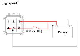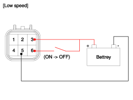 Подсоедините положительный (+) провод аккумулятора к клемме 3, а отрицательный (-) провод к клемме 5.