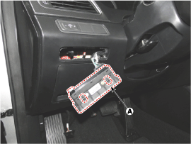 С помощью отвертки или съемника снимите переключатель открытия лючка топливного бака (А).
