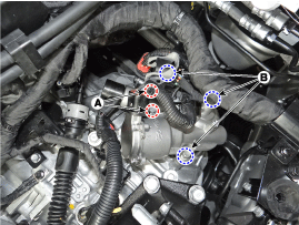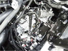 Снимите редукторный привод с коробки передач после ослабления болтов (A-2ea, B-3ea).